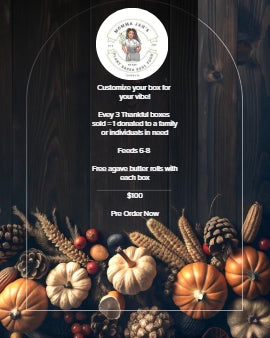 This year take the load off and let Momma Jah Take care of you and yours. Pick any 3 items to build your box. I make you bake. Each Box features 6- 8 servings of each option of your choosing. For every 3 boxes sold, 1 box will be donated to a family or individuals in need. Pick up Nov 24th, 25th, & 26th.